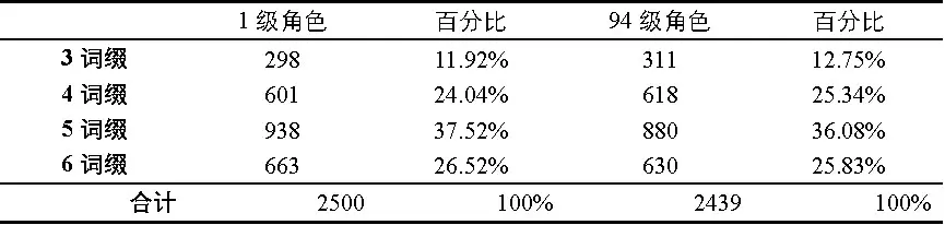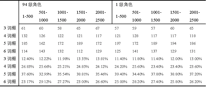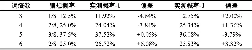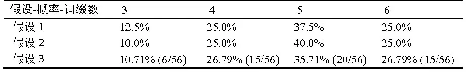 通过表1可以发现,出现3词缀的概率最小,4词缀和6词缀的概率基本相当,5词缀的概率最大。