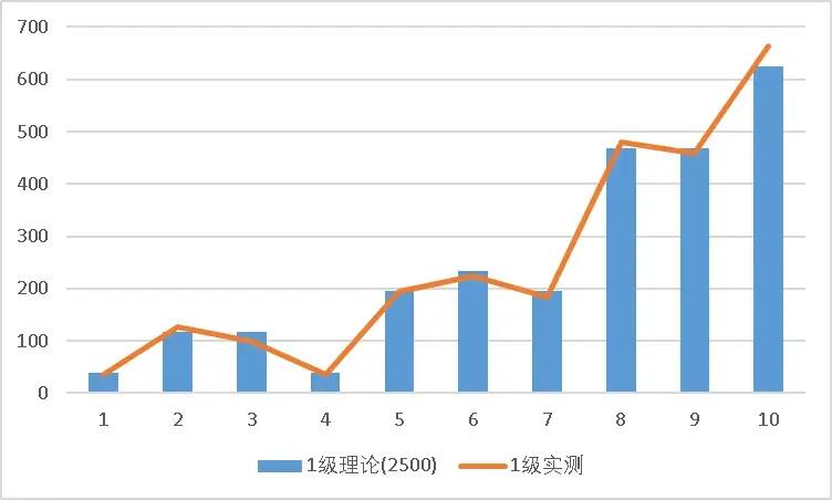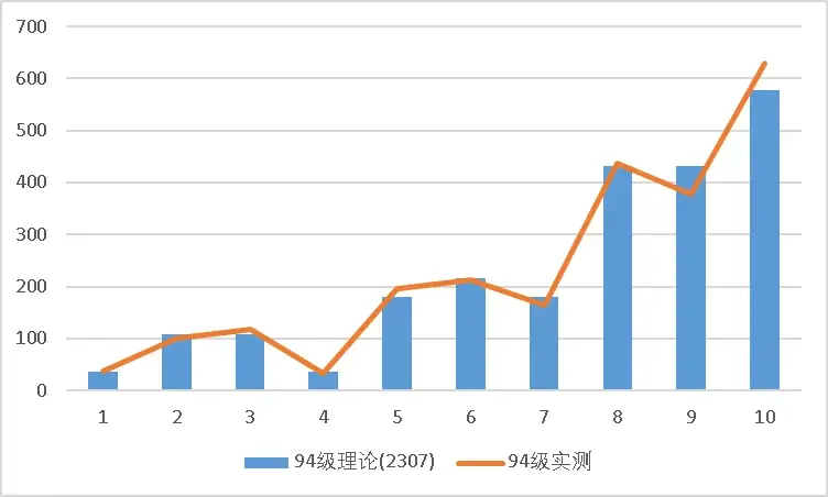 图1 亮金戒指前后缀组合统计与理论值对比图(94级)