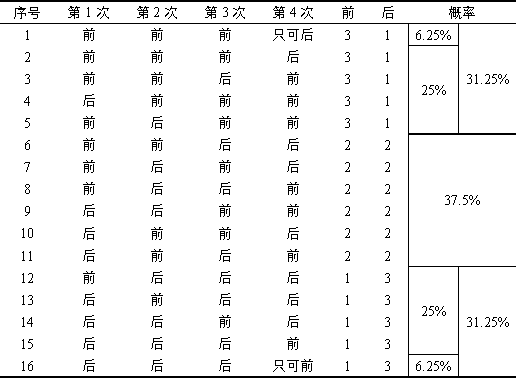 ①若前缀、后缀数均未满3时,每次判定相互独立,都有50%的概率成为前缀或后缀;