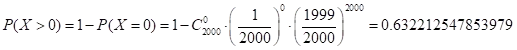 泊松分布(此例中λ=np=2000*1/2000=1):